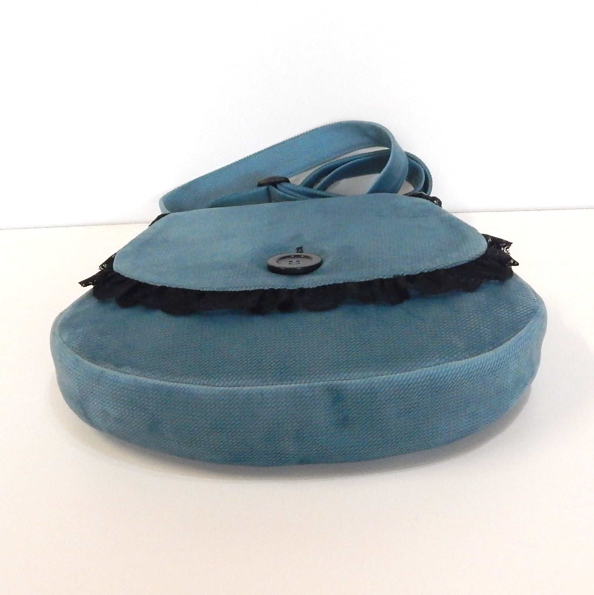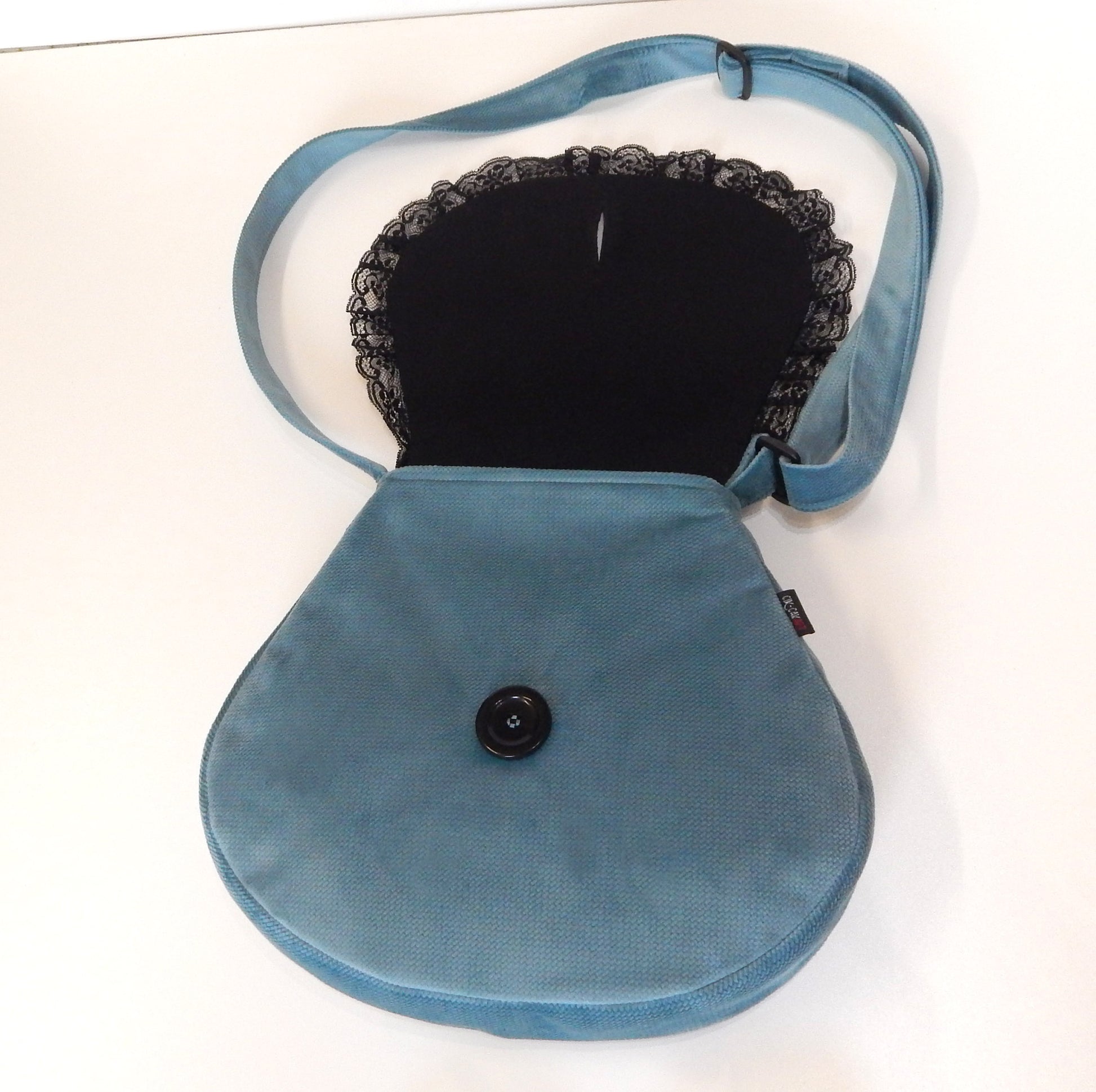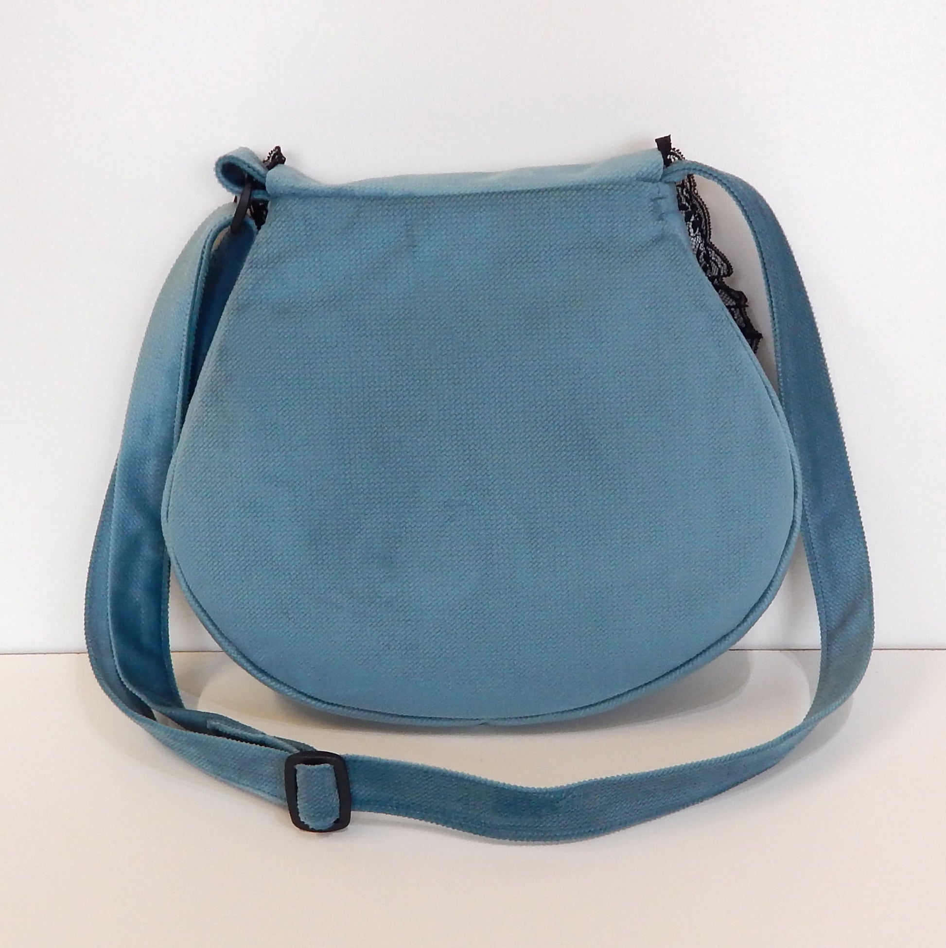 Add a touch of vintage elegance to your fall wardrobe with this handmade mint green velvet crossbody bag. Featuring a teardrop shape, black lace trim, and a bold button closure, it’s the perfect accessory for cozy autumn strolls, café dates, or retro-inspired outfits.