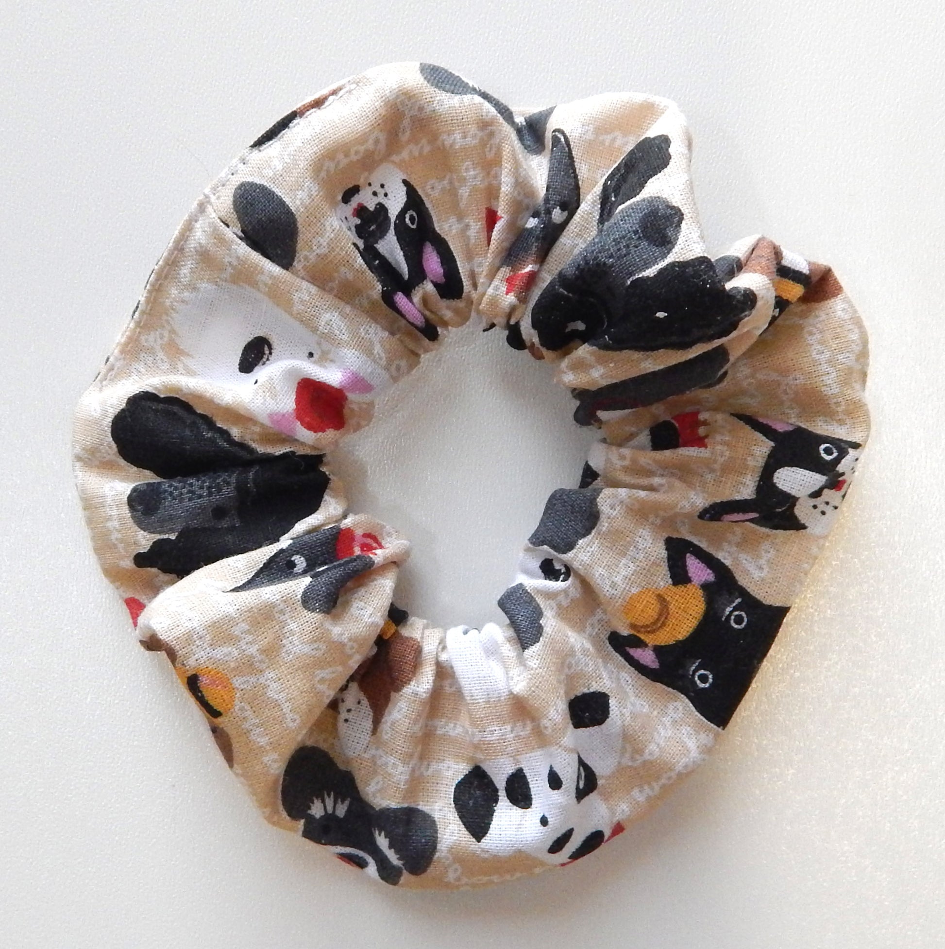 Show your love for dogs with every hairstyle! This handmade cotton scrunchie features adorable dog-themed prints — perfect for dog moms, pet lovers, or anyone who wants a cute and comfy hair accessory with personality.