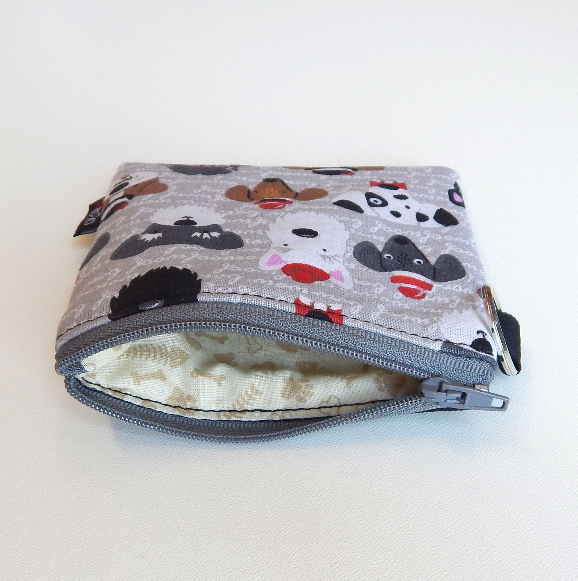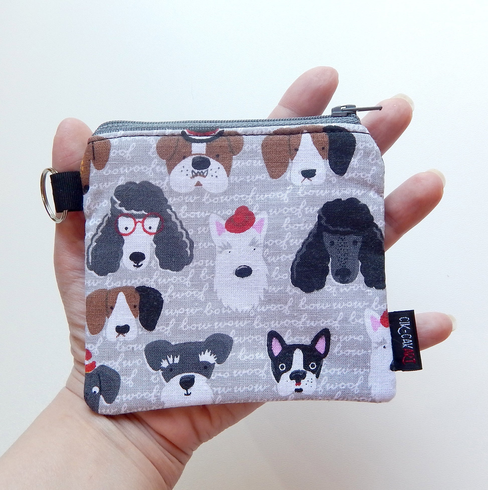 A loyal little pouch for dog lovers. This handmade coin purse features a playful black and gray dog print on sturdy cotton canvas. Perfect for coins, cards, or small essentials — and a thoughtful gift for pet parents or animal lovers.